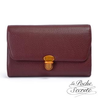 【La Poche Secrete】簡約真皮荔枝紋隨身側背斜背包(酒紅色)
