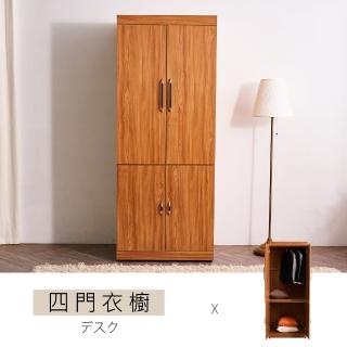 【時尚屋】伊蒂絲2.7尺淺柚木四門衣櫥CV9-702(免運費 免組裝 衣櫥)