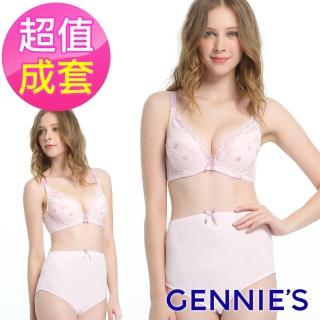 【Gennies 奇妮】愛現V性感內衣褲成套組/搭配高腰內褲XL(紫GA23+GB23)