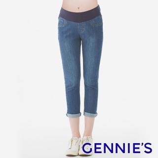 【Gennies 奇妮】刷白造型修身牛仔九分褲(藍T4E01)