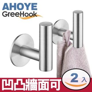 【GreeHook】304不鏽鋼無痕掛勾 浴巾衣帽大單勾 2入