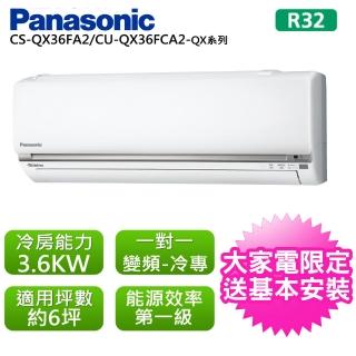 【Panasonic 國際牌】6坪R32一級變頻冷專QX系列分離式空調(CS-QX36FA2/CU-QX36FCA2)