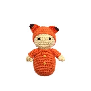 【美國 CHEENGOO】有機竹紗安撫搖鈴玩偶 橘狐狸帽寶貝(嬰兒搖鈴)