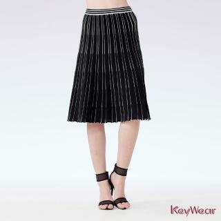 【KeyWear 奇威名品】優雅針織條紋長裙