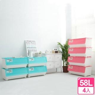 【生活King】前開式掀蓋整理箱-58L(4入組)