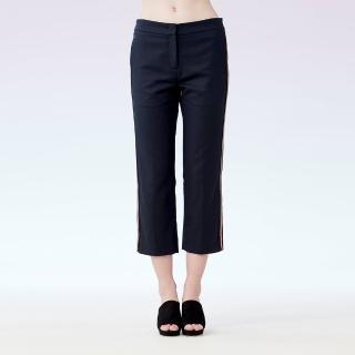【KeyWear 奇威名品】側邊拼接鉆織帶長褲