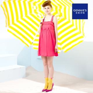 【Gennies 奇妮】夏日甜心蝴蝶結肩帶洋裝(桃紅G1507)