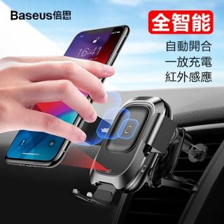【Baseus】紅外線自動感應啟閉式車載支架+無線快速充電二合一 出風口款(支援iPhone13/12/11等)