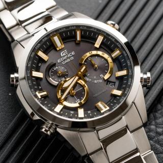 【CASIO 卡西歐】多功能太陽能電波指針錶-銀x黃(EQW-T640YD-1A9DR)