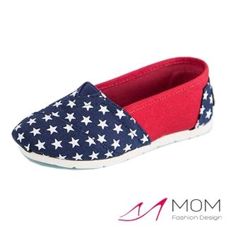 【MOM】韓版休閒舒適帆布鞋 懶人樂福鞋 童鞋(藍底小星星)