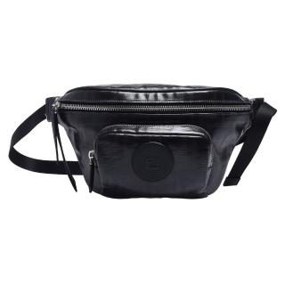【FENDI 芬迪】品牌FF釉面緹花帆布皮革LOGO貼花拉鍊斜背/腰包(黑7VA446-A5K4-F0GXN)
