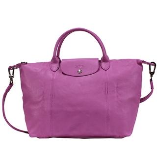 【LONGCHAMP】小羊皮短把摺疊包(中/粉紅色/附背帶)