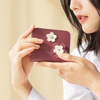 【2R手工真皮】輕軟牛皮Colorful旺斯花朵短夾 酒漾紅