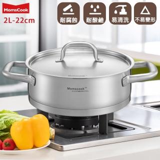 【慕廚 Momscook】加厚 優質不鏽鋼 雙耳淺湯鍋 三層複合底 快速導熱 附不鏽鋼鍋蓋(2L-22cm-LY2207)