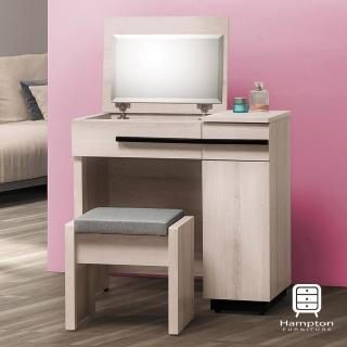 【Hampton 漢汀堡】瑪希系列2.7尺掀鏡化妝桌椅組(化妝桌/化妝台/化妝椅/化妝桌椅/掀鏡化妝桌)