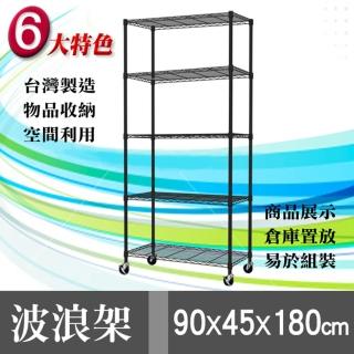 【魔術大空間】90*45*180 輕型 烤漆收納五層鎖管鐵架-附輪(黑色)