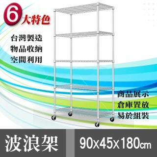 【魔術大空間】90*45*180 重型 電鉻收納五層鎖管鐵架-附輪