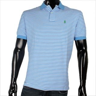 【RALPH LAUREN】POLO經典刺繡LOGO條紋綿質POLO衫(淺藍/白)