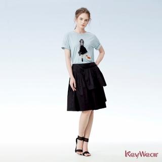 【KeyWear 奇威名品】青春俏麗壓褶及膝裙