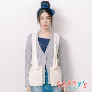 【betty’s 貝蒂思】開襟拼接透膚雪紡假兩件罩衫(淺灰)