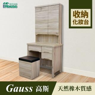 【IHouse】高斯 天然橡木收納化妝台 含收納椅