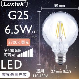 【Luxtek樂施達】高效能 Led 圓球型燈泡 可調光 6.5W E27 黃光-10入(LED燈 燈絲燈 仿鎢絲燈)