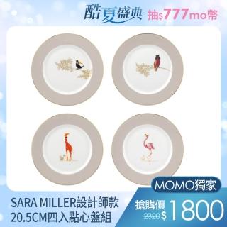 【Portmeirion 波特玫琳恩】SARA MILLER設計師款小動物樂園系列20.5CM四入點心盤組(禮品組)