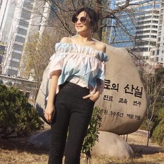 【BBHONEY】韓國春裝漸層露肩一字領短袖寬鬆上衣(正韓空運 實拍)
