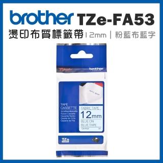 【brother】TZe-FA53★燙印布質標籤帶 12mm 粉藍布藍字