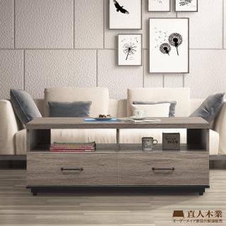 【直人木業】CAN 古橡木120公分大茶几-後面有附2個收納椅