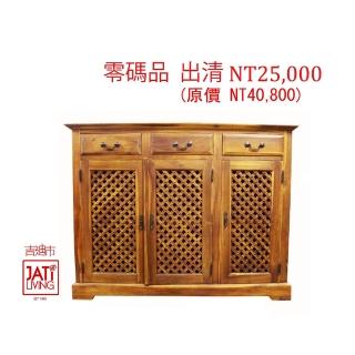 【吉迪市柚木家具】實木條狀鉚釘三門腰櫃/收納櫃(HY135 置物 收納 龐克 幹練 個性 原木質感)