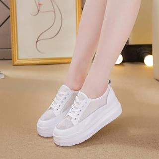【JC Collection】牛皮柔軟厚底鏤空素面透氣舒適綁帶休閒鞋(白色)