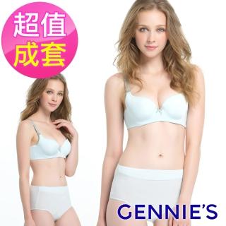 【Gennies 奇妮】WinCool涼感無痕內衣褲成套組/搭配高腰內褲XL(藍GA20+GB21)