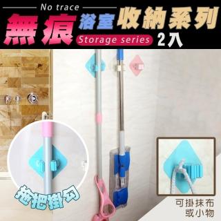 【德利生活】無痕多彩稜型拖把掛勾2入(拖把掛勾/置物架/無痕貼/)