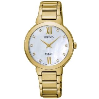 【SEIKO 精工】SOLAR 太陽能晶鑽珍珠貝面甜美女錶-金(V115-0CT0G/SUP384P1)