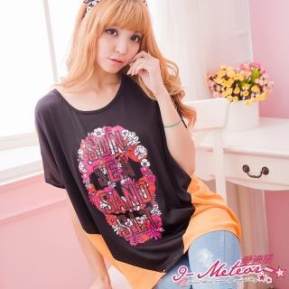 【I-meteor】中大尺碼-撞色感印花骷顱上衣PA1621(淘氣橘)