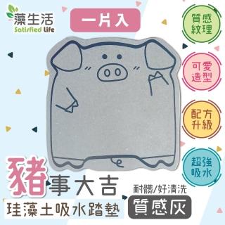 【藻生活】豬事大吉-珪藻土吸水踏墊/質感灰-一片入(耐髒 珪藻土 台灣製 地墊 踏墊 可愛造型 吸水 好清洗)