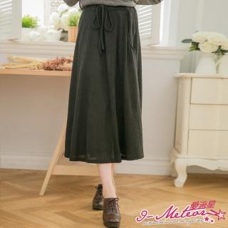 【I-meteor】中大尺碼-坑直條紋腰抽繩口袋裙PA3042(細膩黑)
