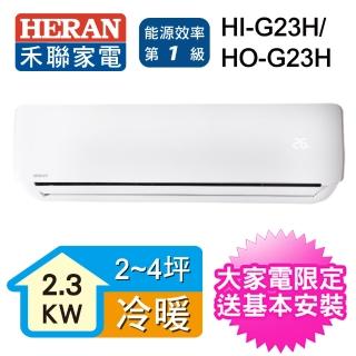 【HERAN 禾聯】2-4坪 R410A一級變頻冷暖型分離式空調(HI-G23H/HO-G23H)
