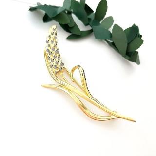 【I JEWELRY】高級手工純銀訂製系列 春天來臨金色稻穗純銀胸針 別針(附純銀保證卡 頂級鋯石)