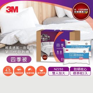 【3M】發熱纖維可水洗四季被NZ250+標準枕2入(雙人加大8x7)