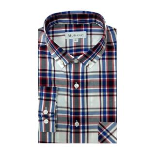 【MURANO】英倫個性長袖襯衫-藍灰紅格(格紋)