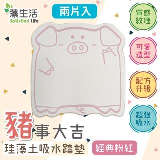 【藻生活】豬事大吉-珪藻土吸水踏墊/經典粉紅-兩片入(珪藻土 台灣製 地墊踏墊 可愛造型 吸水 好清洗)