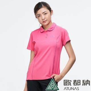 【ATUNAS 歐都納】女款POLARTEC短袖POLO衫(A-P1913W桃粉/防曬抗UV/休閒百搭/透氣舒適/吸溼排汗/快乾/抗臭)