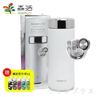 森活304真空骨瓷保溫杯-360ml-白色+繽紛玻璃杯-450ml(買一送一)