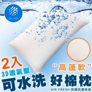【透氣專家】2入-台灣製彈力網布水洗QQ枕頭 高澎軟纖維綿枕(可以洗的枕頭)