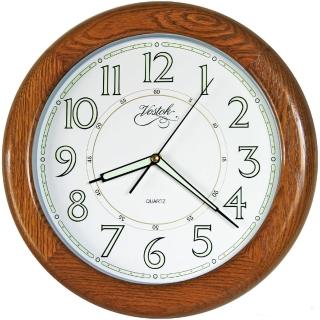 【鐘情坊 JUSTIME】14吋 高級OAK實木框 白底夜光易讀鐘面盤 家飾壁鐘(家居掛鐘 時鐘 簡約易讀 靜音機心)