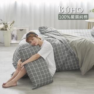 【BUHO布歐】純棉格紋三件式床包枕套組酷淨森澈(加大)