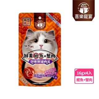 【喜樂寵宴JOY FOOD】貓主子御用泥條-葡萄糖胺之機能保健泥條-鮮美鰹魚+蟹肉16gx4入(台灣製造-貓肉泥條)