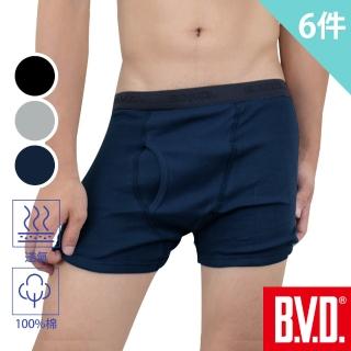 【BVD】100%純棉彩色平口褲-買3送3超值6件組(採用美國棉 低敏 抗起毬/三色可選)